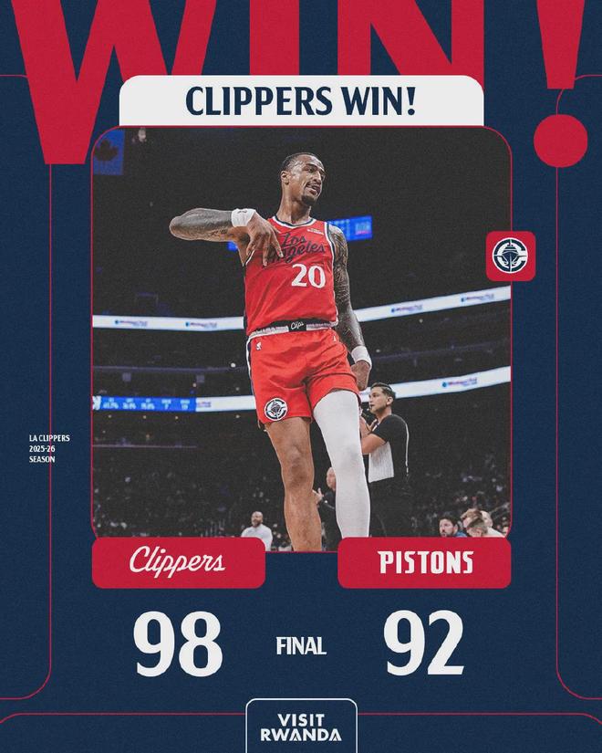 哈登投篮20中4,直接把篮筐砸歪......然而快船还是赢了东部最强球队活塞,客场98-92带走胜利。