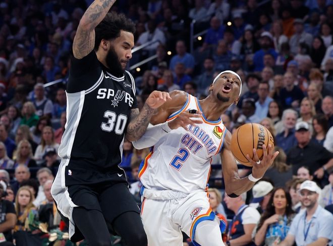 强调两点:第一这只是可能,第二,这是从高阶数据呈现出来的结果,如果真将雷霆放在过去NBA对抗尺度下,他们这些小身板估计受不了。但实话实说,NBA常规赛,对于雷霆已经没任何难度了。赛季前25场比赛赢下24场,只被开拓者逆转过22分;但从12月中旬到下旬,雷霆遇到了克星马刺,三场比赛,第一战2分惜败;第二战输20分,第三战输15分。马刺击败雷霆的方式其实很简单,雷霆不善于限制对手三分(对手打雷霆时三分球命中率37.4%,联盟第6),雷霆也没有前场篮板球保障(本赛季场均前场篮板9.3记,联盟倒数第二)。