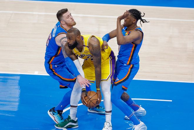 这一点不用过多解释,雷霆除了霍姆格伦和哈滕,其他人身高对抗都处在劣势,对手拿到较平均值更多的罚球不意外。但相较于上赛季,雷霆本赛季的罚球次数,激增17%,而对手同期下降0.3%!上赛季常规赛,比如打快船、掘金、森林狼等西部对手,亚历山大已经享受到了吹罚红利带来的胜利,季后赛更不用赘述。关键是本赛季提升这么多的比例,只有在当初泡泡园区的湖人身上见到过。这里也不是暗讽湖人,因为当年确实没有球队能同时限制住詹姆斯和浓眉,可雷霆有谁?只有亚历山大。